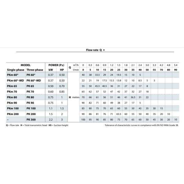 Θερμοκρασία αντλούμενου υγρού (°C) : 60